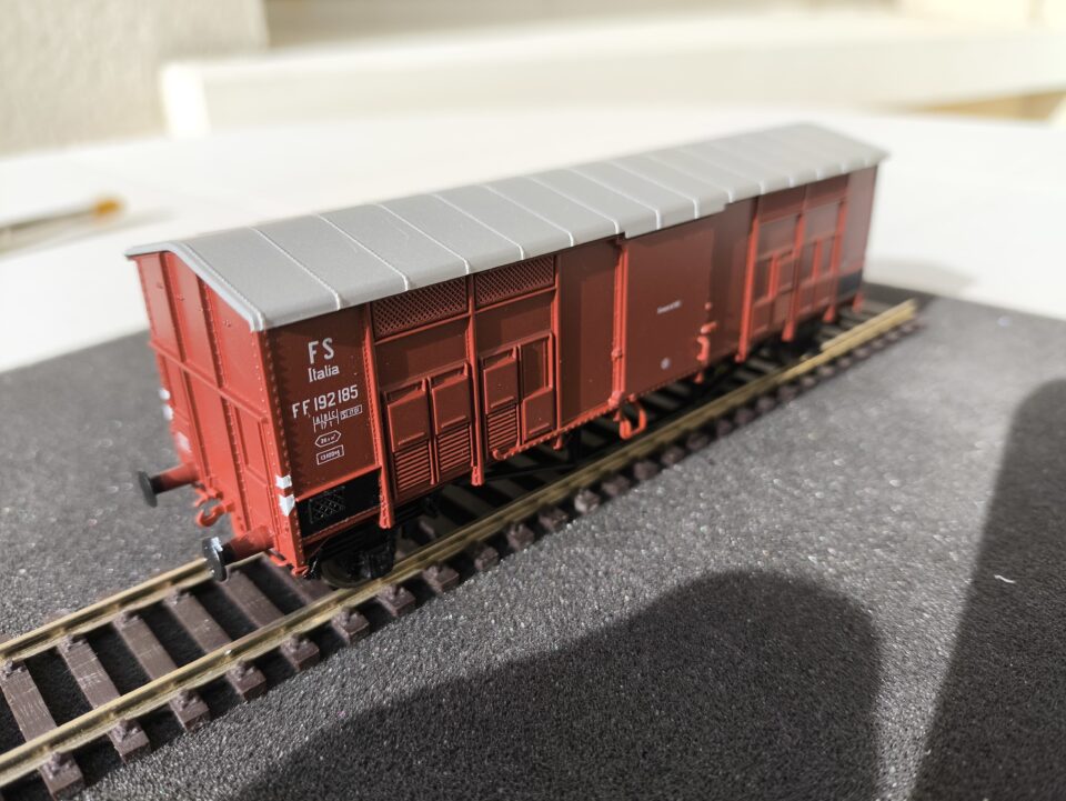 Vends un wagon couvert des FS type FF n° 092 185, époque III. Marque ROCO référence 76595.