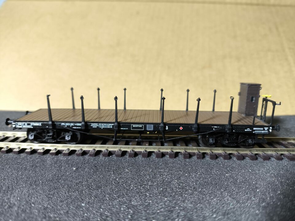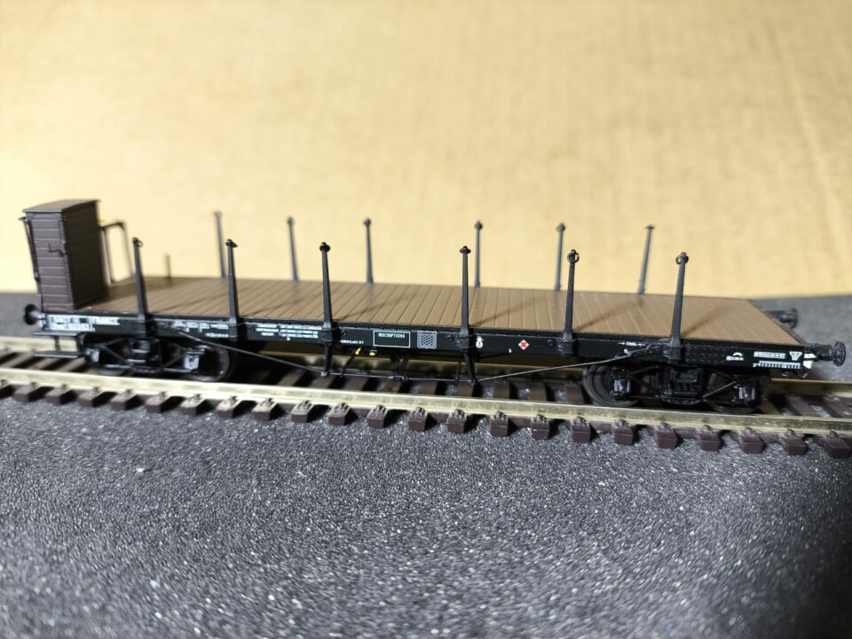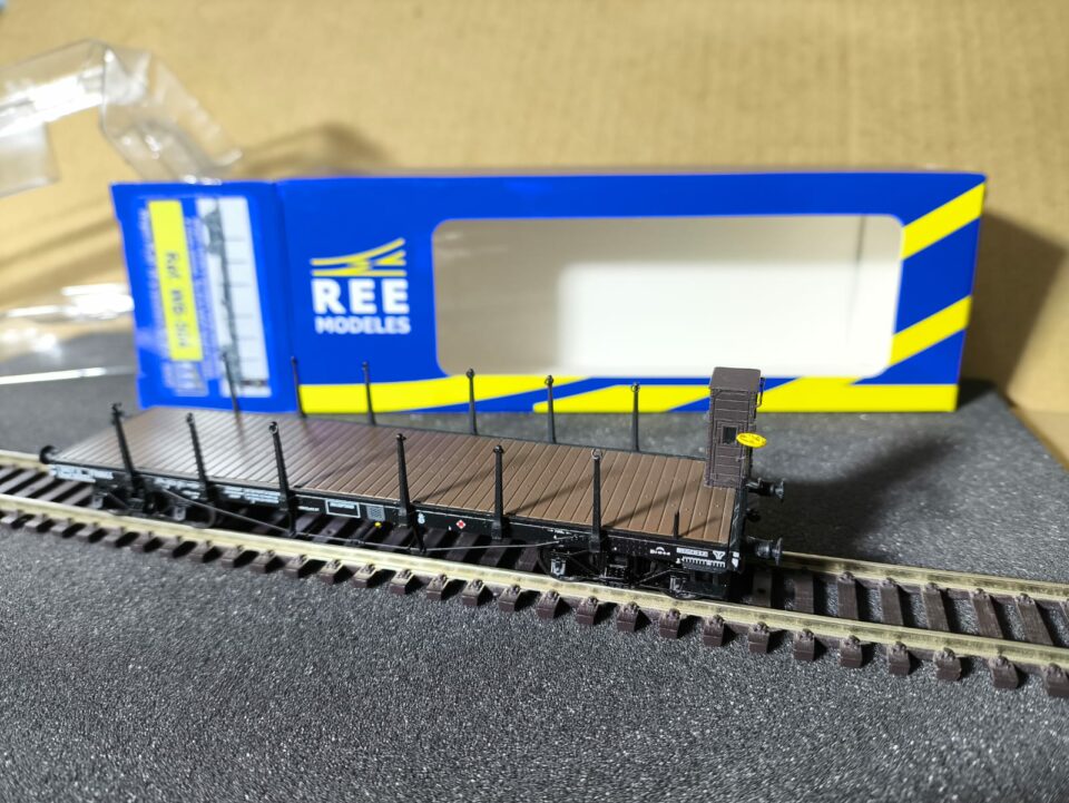 Wagon plat à ranchers à vigie, type TP, n° Rywf 110593, marque REE modèles, référence WB 504. - (HO Matériel Remorqué)