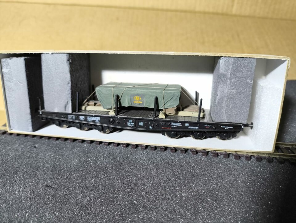 wagon plat de la DB, à bogies 3 essieux pour charges lourdes, chargé, n° SSym 46, marque marklin référence 48668. - (HO Matériel Remorqué)