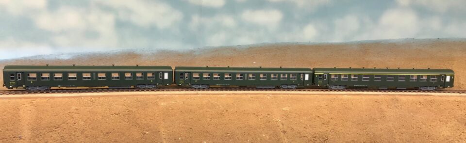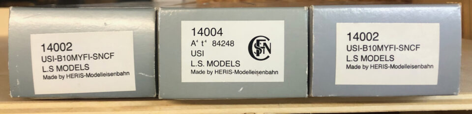 Bonjour, je vends trois voitures voyageurs USI Héris-LS Models époque III, en boites d'origine : 1 A4t4 et 2 B10