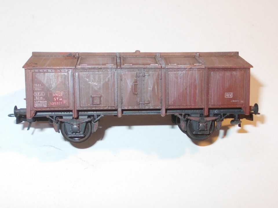 1131 ROCO Wagon Tombereau a Trappes a Chaux décoré SNCF et Patiné - (HO Matériel Remorqué)