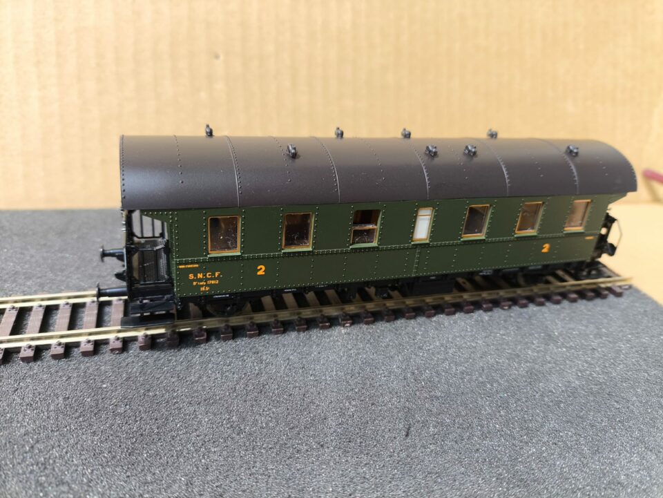 Vends deux voitures voyageurs SNCF, ex DRG, "boite à tonnerre" n° B 6 tmfp 17812.