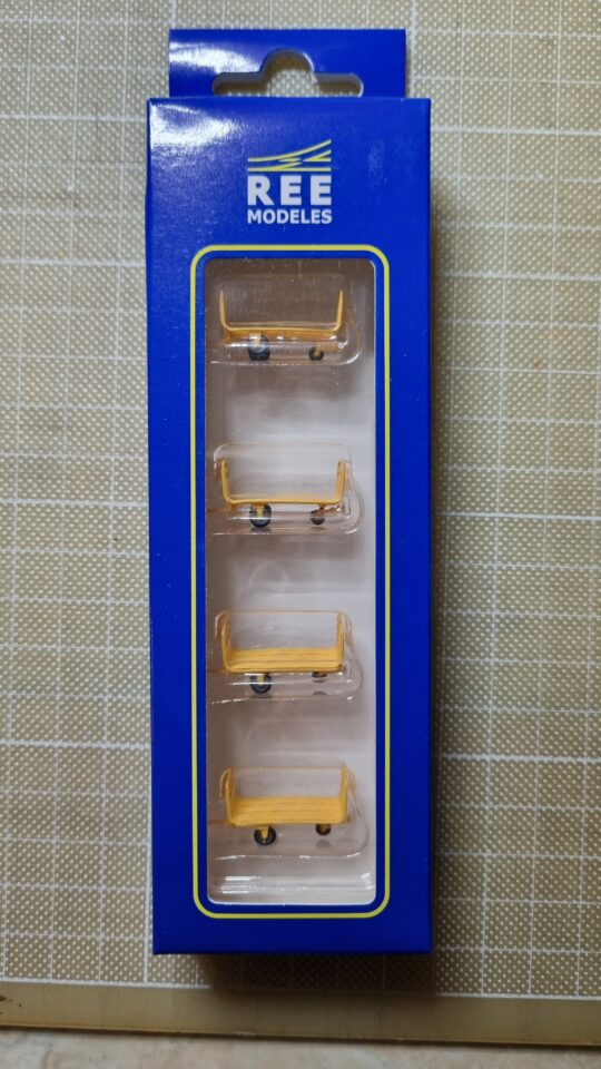 REE - Set de 4 chariots Poste METAL - Jaune - (HO Décor)