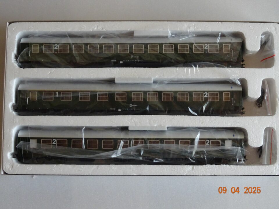 Un coffret de voitures des chemins de fer autrichiens – OBB - époque VI de marque Jägerndorfer – réf : 90300 comprenant 2 voitures de 2ème classe (B12), et une mixte 1ère et 2ème classe ( A5/B6),