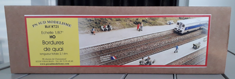 Vends kit bordures de quai de gare PN SUD MODELISME (8721), longueur totale 2,14m, absolument neuf dans son emballage d'origine pour un montant de 20,00€ par chèque ou virement, pas de paypal, prévoir 9,00€ pour frais de port en colissimo sans signature.