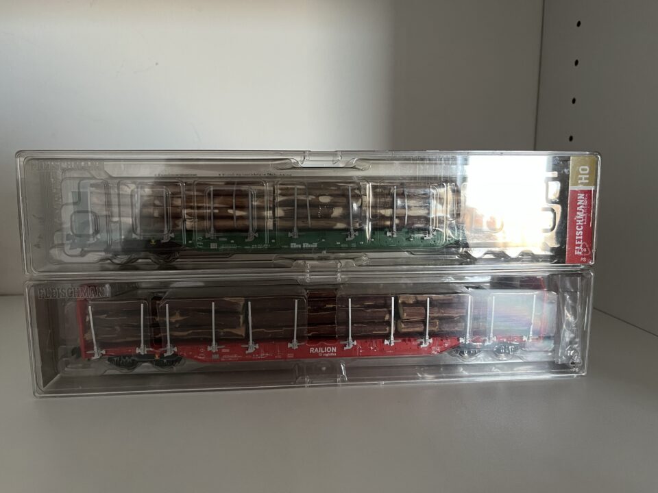 Fleischmann HO 525401 & 07 - lot de 2 wagons plats porte grumes Railon et OnRail - (HO Matériel Remorqué)