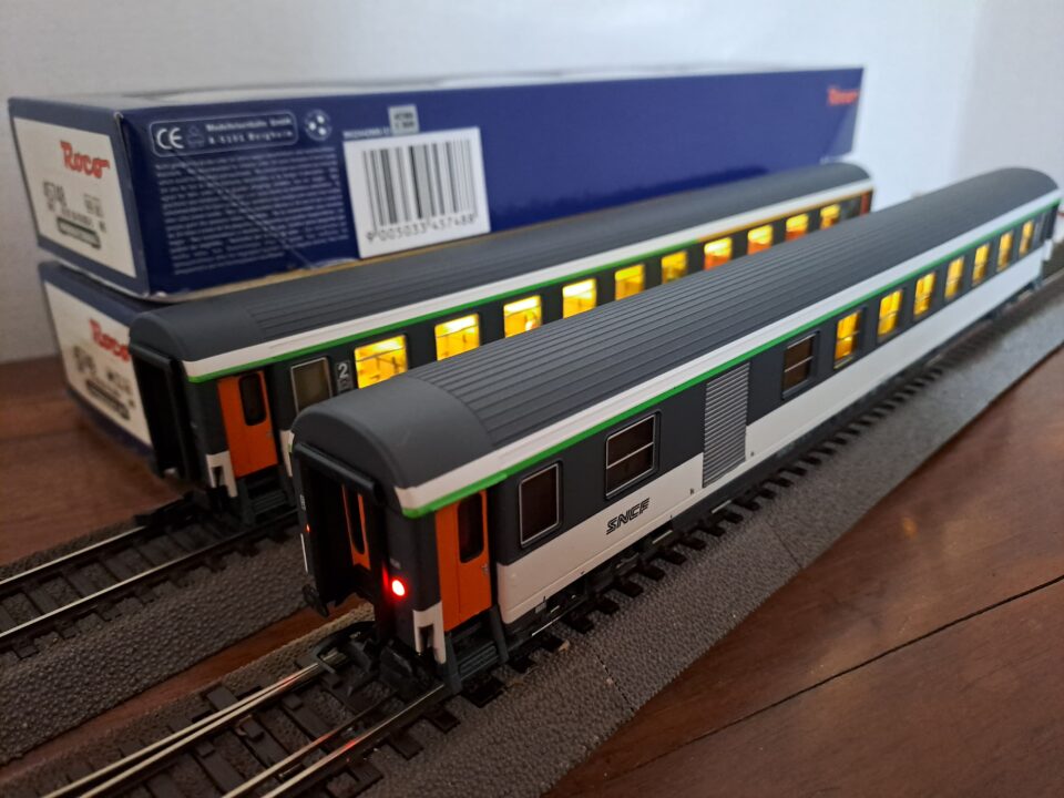 A VENDRE 2 voitures "corail" marque ROCO . voiture mixte A4/B6 référence 45749 et 2cl/fourgon référence 45748 .