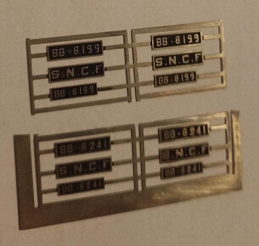 - 2 jeux de plaques d'immatriculation en laiton photogravé pour BB8100 / 8200 de Roco (ou d'autres marque) BB 8199 et BB 8241