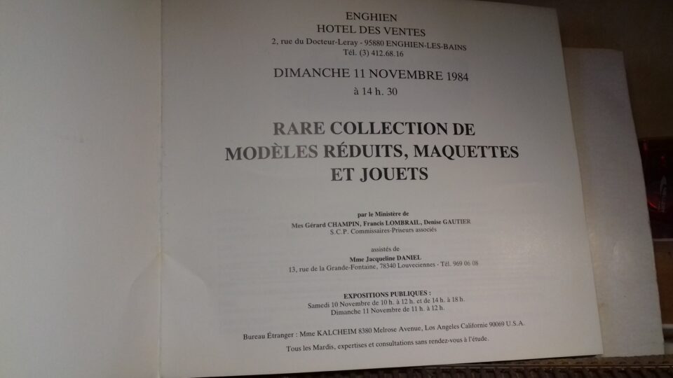 rare catalogue vente aux encheres d'une rare collection de modeles reduits maquettes et jouets 22 pages en bon etat reglement par cheque port en sus 5,5€