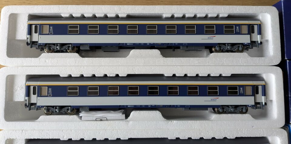 Lot de 5 voitures Corail VU couchettes logo casquette de marque Roco comprenant :