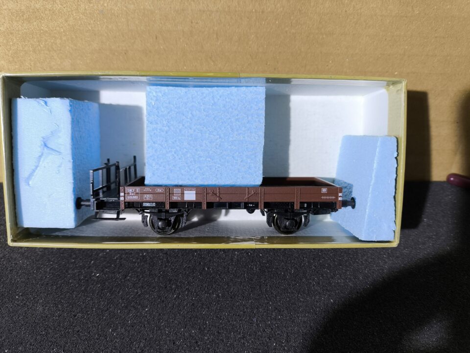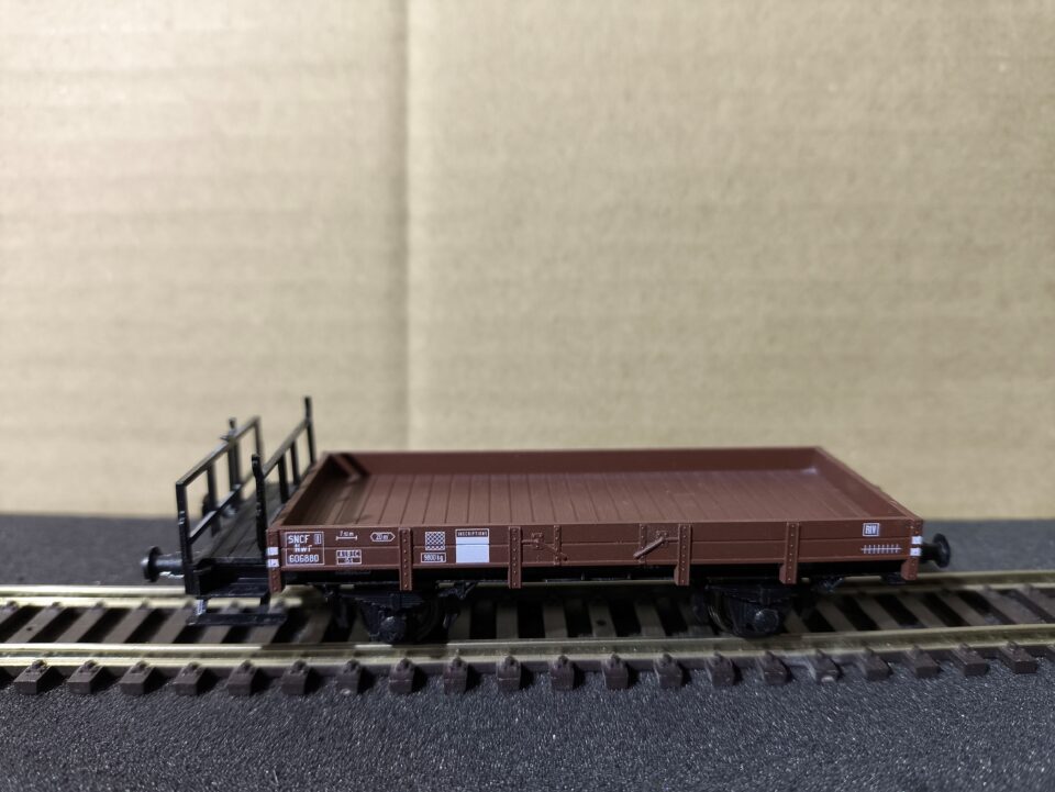 Vends un wagon plat à 2 essieux. SNCF serre-frein. Nwf 606880 Epoque III. Marque SASCHENMODELLE.