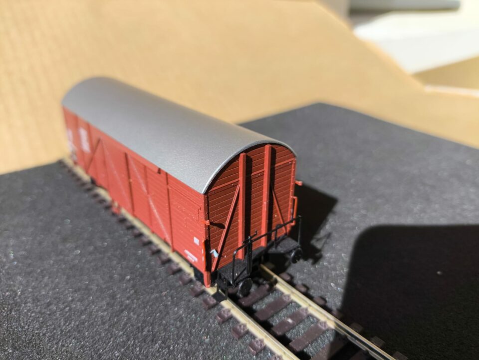 Wagon couvert de la DB type Gmhs 35,n°232 295 avec passerelle serre-frein. Marque ROCO. - (HO Matériel Remorqué)