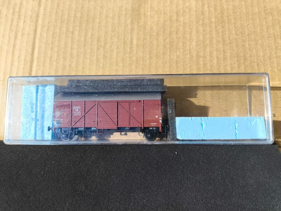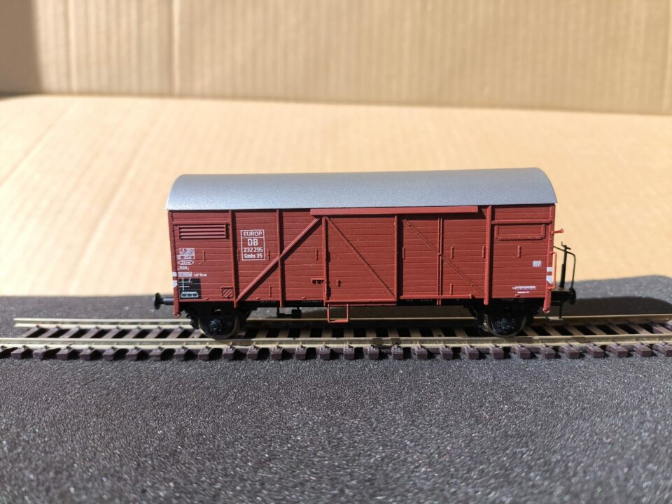 Vends un wagon couvert de la DB type Gmhs 35,n°232 295 avec passerelle serre-frein. Marque ROCO.