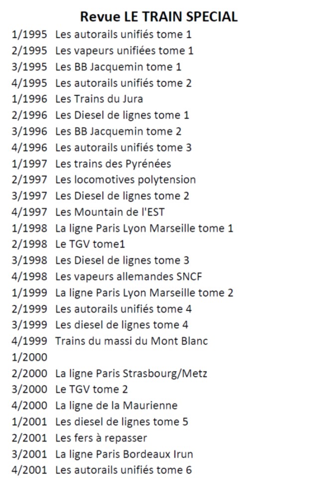 Vends exemplaire de la revue LE TRAIN Spécial sur les listes jointes